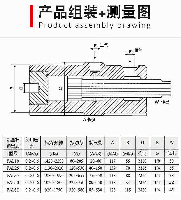 FAL系列活塞桿伸出氣動振動器FAL18/25/35/40/55/60全系列
